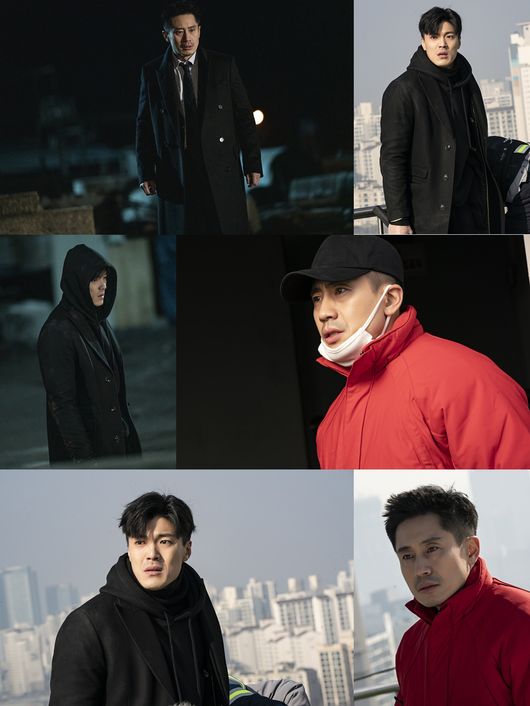 또 다른 스틸 속에서는 신하균의 스타일이 눈에 띈다. 이재윤을 검거하기 위해 완벽한 수트를 고집하던 기존의 스타일을 버리고 강렬한 레드 컬러의 점퍼와 모자 그리고 마스크로 위장 수사에 들어간 신하균의 모습이 호기심을 자아내는 것. 반면 또 다른 경찰을 인질로 삼은 채 더 이상 피할 수 없는 신하균과의 대결을 앞두고 분노로 가득한 표정을 짓고 있는 이재윤의 모습 또한 시선을 강탈한다.