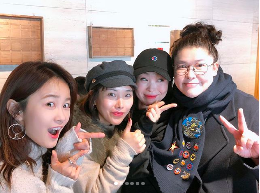공개된 사진 속 김지민은 신봉선, 오나미, 이영자와 나란히 서서 발랄하게 포즈를 취하고 있다. 네 명의 돈독한 친분이 느껴지는 장면이다.