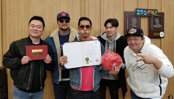 공개된 사진 속에서 박준형, 데니안, 김태우는 '컬투쇼' DJ 김태균과 스페셜 DJ 유민상과 함께 환한 미소를 짓고 있는 모습. 특히 '컬투쇼'에서 '데상'을 수상한 박준형은 상장을 들고 특유의 미소를 짓고 있어 눈길을 끈다.