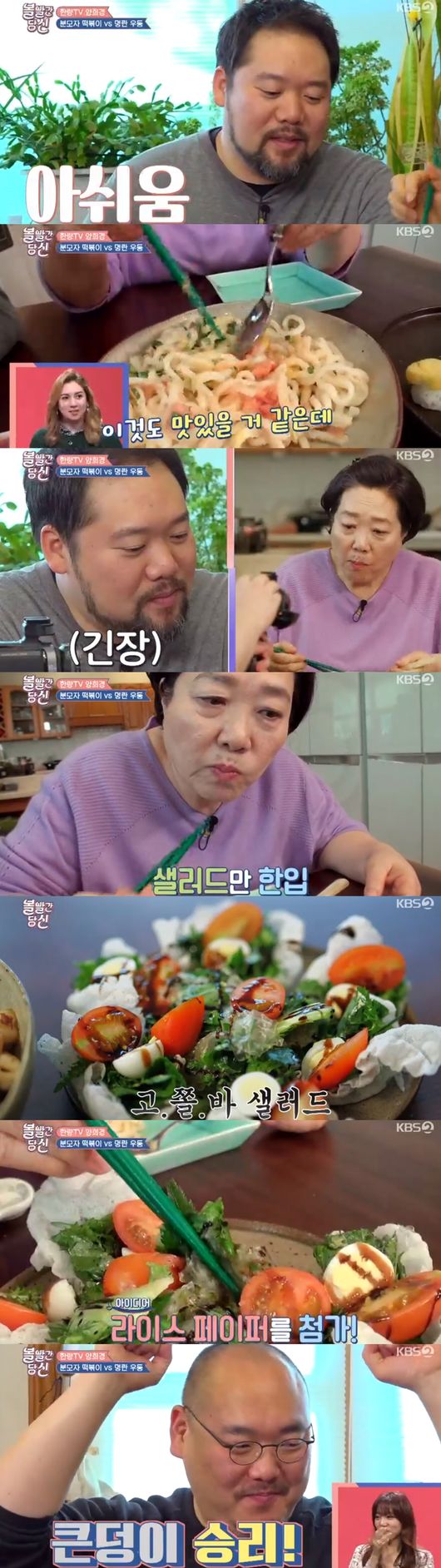 양희경의 시식. 명란 우동을 맛 보며 "명란, 버터, 달걀의 조화가 절묘하다. 구수하면서 감칠맛이 난다"고 호평했다. 계란 초밥에 대해서는 "좀 짜다"고 평했다.