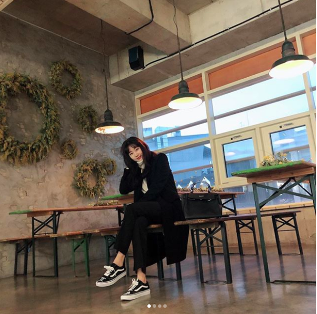 또 다른 사진 속 검은색 코트에 검은 색 팬츠를 매치한 김사랑은 한 카페에 앉아 카메라를 바라보며 미소를 짓고 있다. 검은 색 운동화를 매치한 김사랑의 우월한 미모와 놀라운 다리 길이가 감탄을 부른다.