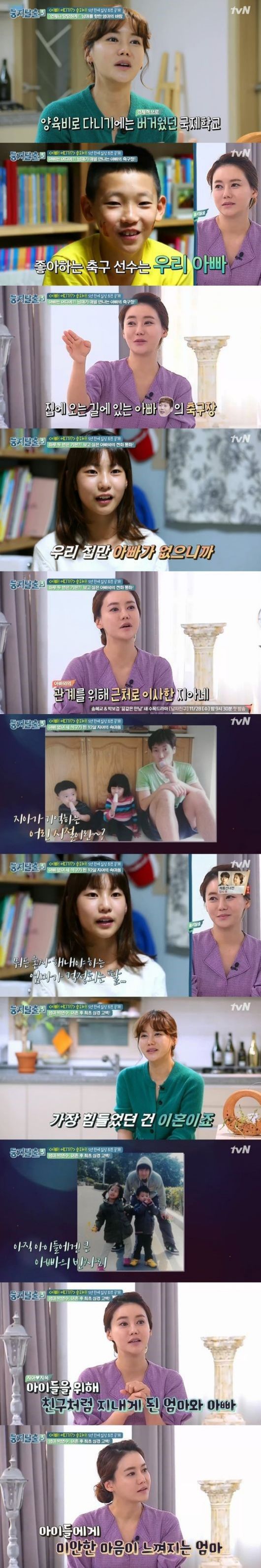 특히 이혼했지만 송종국이 사는 곳 근처로 이사와 친구처럼 지낸다고. 박연수는 "아이들이 등하교 하는 길에 아빠의 축구장이 있다. 아빠가 지아한테 자주 전화한다. 지욱이한테는 자주 안 하지만. 아빠와의 관계를 위해 근처로 이사와서 자주 연락한다"고 담담하게 말했다.