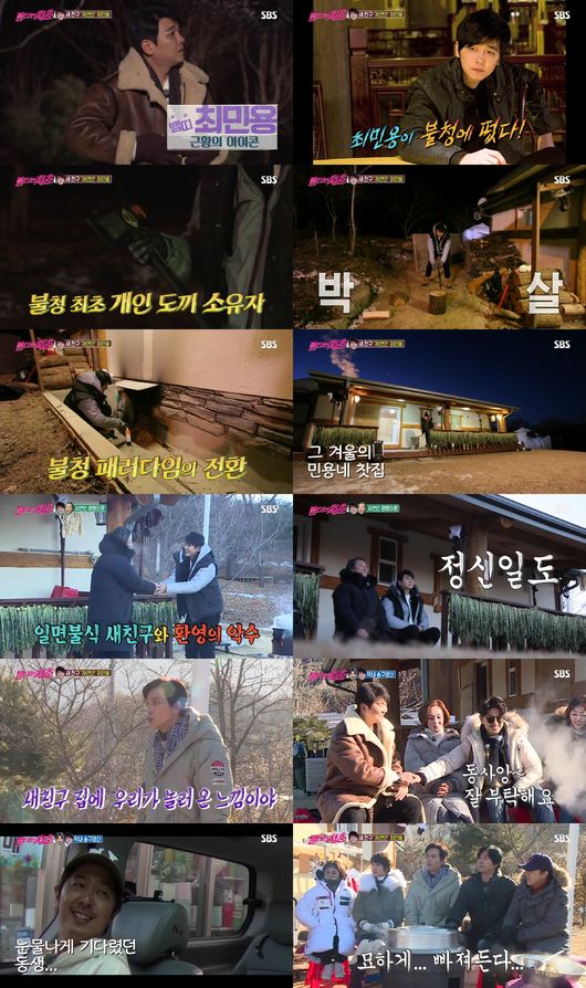 이 날은 ‘근황의 아이콘’이자 ‘자연인’ 포스인 배우 최민용이 ‘불타는 청춘’ 막둥이로 등장했다. 한때 까칠 민용으로 시트콤에서 인기를 구가했던 최민용은 “전날 잠이 안왔다. 설렘 반 두려움 반이었다” 면서 새벽에 도착, 형, 누나들을 맞기 위한 준비에 들어갔다.