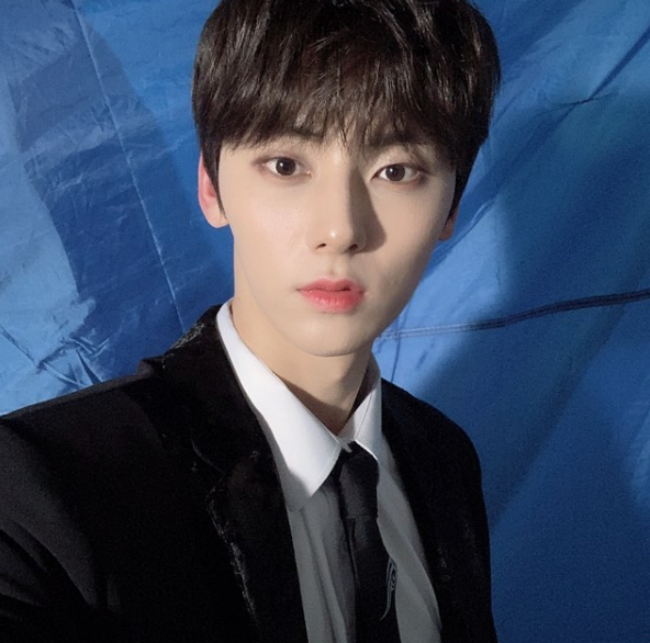 황민현은 15일 자신의 SNS를 통해 셀피 한 장을 게재했다. 이날 오후 열린 서울가요대상 대기실 인증샷.