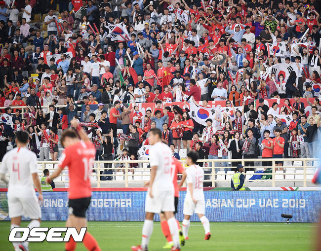‘소수 정예’ 한국 응원단이 힘을 내자 태극 전사들도 경기력으로 보답했다. 손흥민을 중심으로 경기 초반부터 중국을 거칠게 몰아친 한국은 전반 14분 터진 황의조의 페널티킥 선제골과 김민재의 추가골을 더해 승리를 거뒀다. 중국을 꺾고 1위를 확정한 한국은 기분 좋게 59년 만의 아시안컵 우승을 향한 도전을 이어가게 됐다. /mcadoo@osen.co.kr