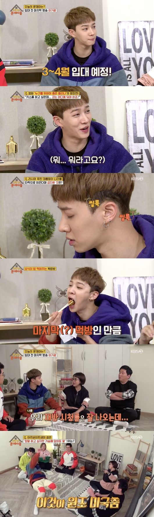 이날 이기광은 “날짜가 정확하게 정해진 것은 아니지만 3~4월에 입대한다”고 말했다. 이에 ‘옥탑방의 문제아들’ 멤버들이 “입대 전 마지막 예능으로 택해달라”고 부탁하자 “마지막이 될 수도 있다”고 답했다.