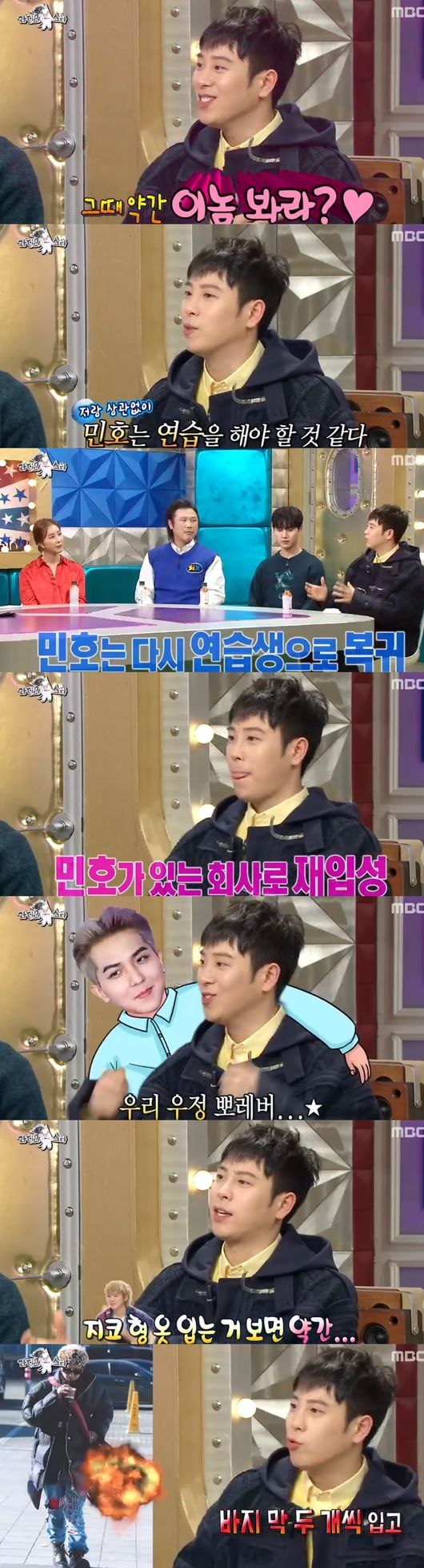 이어 "그리고 나서 민호네 집에 가서 자는데 미안해서 잠이 안왔다. 새벽에 민호네 부모님을 깨웠다. 거실로 나오시라고 했다. 오늘 이런 일이 있었는데 민호가 안한다고 했는데 민호는 다음날 연습실에 나가야할 것 같다고 말씀드렸다. 그래서 민호는 다시 나가고 저는 1년 동안 열심히 해서 다시 그 회사로 가게 됐다"고 말했다.