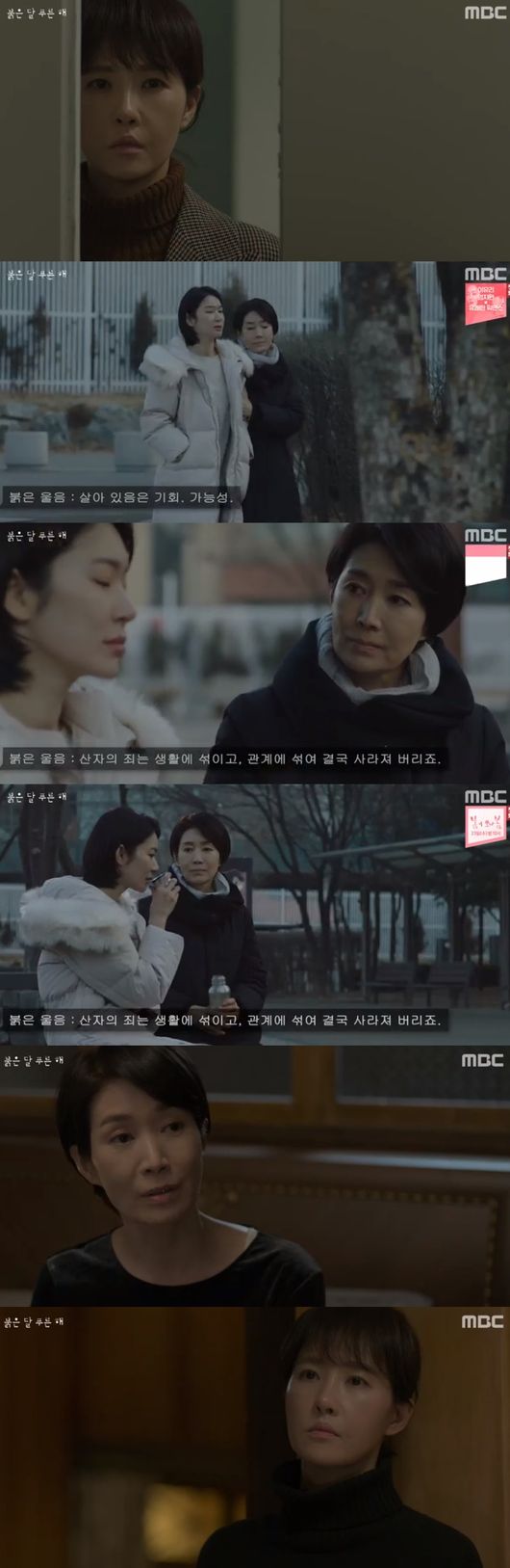 16일 방송된 MBC 수목드라마 '붉은 달 푸른 해'에서 차우경(김선아)이 허진옥(나영희)에게 "나 기억이 났어. 엄마가 내 동생 죽인거"라고 말했다.
