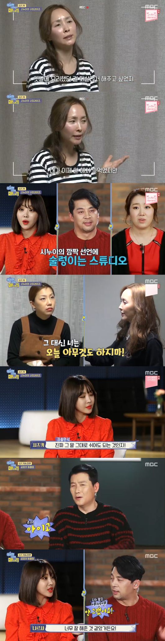 백아영, 오정태 부부의 모습이 그려졌다. 아침부터 화장으로 꾸미며 무언가 준비, 알고보니 오정태의 생일이었던 것. 이때 시母는 시누이네도 초대했다고 했다. 과거 시누이 집에서 요리했던 아영. 상의 한 마디 없이 시누이를 초대해 당황하면서 "부담스러워시겠다"며 남편 생일에 시누이 부부가 초대된 것을 부담스러워했다. 이와달리 정태는 "드디어 생일다운 잔치가 되겠다"며 눈치없는 모습을 보였다. 아영은 "솔직히 시누이에 시누이까지 오니 신경쓰이고 부담스러웠다"고 전했다.