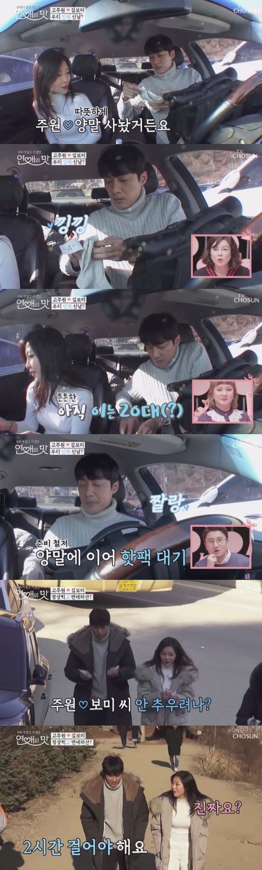 고주원은 제작진이 몰래 제보한 영상에서 “되게 매력있을 것 같다. ‘연애의 맛’에 나온 여자분들 중 제일 괜찮다”고 말했다. 강원도 인제에 도착한 고주원과 김보미는 다정하게 서로에 대한 이야기를 이어갔다. 김보미가 계속 사투리를 신경쓰여하자 고주원은 “내 귀에는 예쁘게 들린다”고 웃으며 말해 분위기를 누그러뜨렸다.