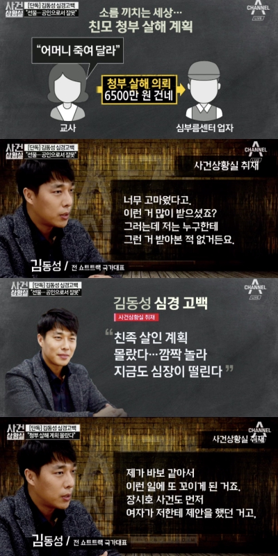 김동성은 심부름센터 업자에게 친모를 살해해 달라고 의뢰해 최근 재판에 넘겨진 30대 여교사와 부적절한 관계였다는 의혹에 휩싸였다.