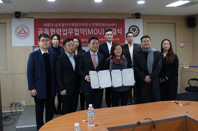 글로벌 K센터(파주 한류트레이닝센터)와 세종대학교 글로벌지식평생교육원과 오늘(18일) 오전 K콘텐츠 문화 확산 및 양사 브랜드 발전 등 협력을 위해 손을 잡았다.
