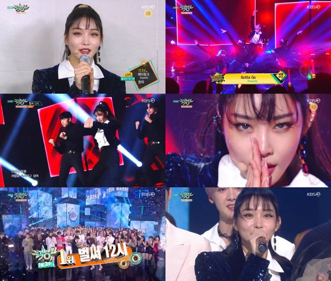 청하는 지난 18일 오후 방송된 KBS2 음악프로그램 '뮤직뱅크'에서 두 번째 싱글 '벌써 12시'로 1위를 차지했다.