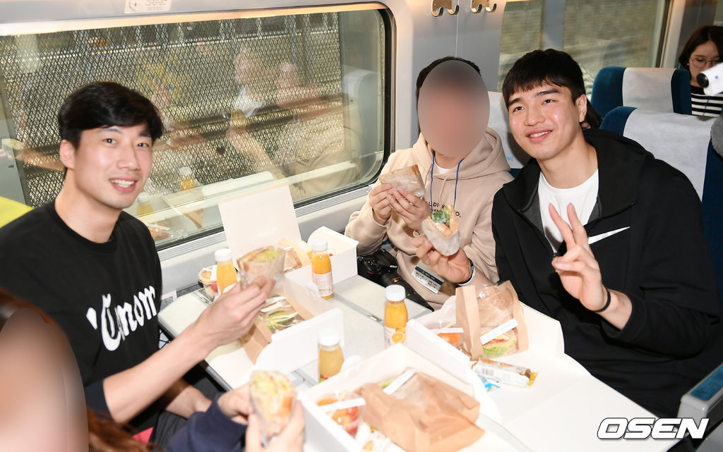 오후 12시 50분 창원행 기차에 탄 팬들은 사회자의 진행에 맞춰 어색함을 깨는 시간을 가졌다. 특히 가위바위보 게임을 통해서 선수들과 점심 식사를 할 수 있는 팬을 선정했고, 뽑힌 팬들 많은 사람의 부러운 시선을 한 몸에 받으며 점심 식사를 하게 됐다.
