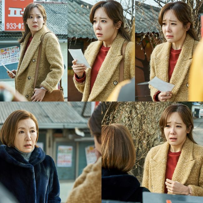 또 다른 사진 속에는 허송주(정애리 분)가 당혹스러운 표정을 짓고 있어 시선을 사로잡는다. 허송주는 과거 임치우를 버린 악행을 숨기기 위해 거짓 행보를 서슴지 않던 인물. 이랬던 허송주가 임치우를 마주한 채 당황한 표정을 드러내고 있어 과연 두 사람 사이에 무슨 일이 벌어진 것인지 관심이 모아진다.