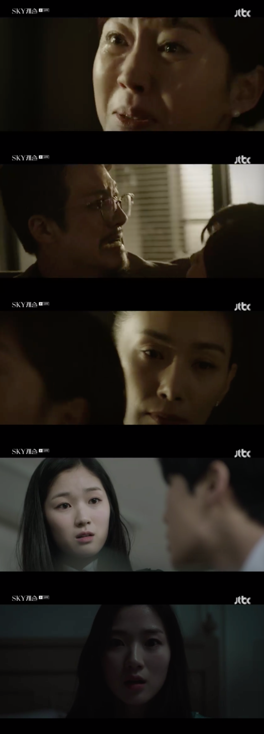 ‘SKY캐슬’에서는 강준상(정준호 분)이 김보라(김혜나 분)가 자신때문에 목숨을 잃었다고 자책하고 병원에 사표를 내겠다고 결심했고, 아내인 한서진(염정아 분)에게 강예서(김혜윤 분)의 시험지 유출과 관련해서 선택하라고 조언했다.