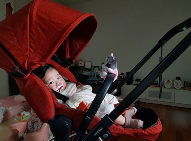 공개된 사진 속 한석준의 딸은 전현무가 사준 유모차에 반듯하게 앉아 카메라를 응시하고 있다. 앙증맞은 볼살과 큰 눈망울이 눈길을 사로잡는다.