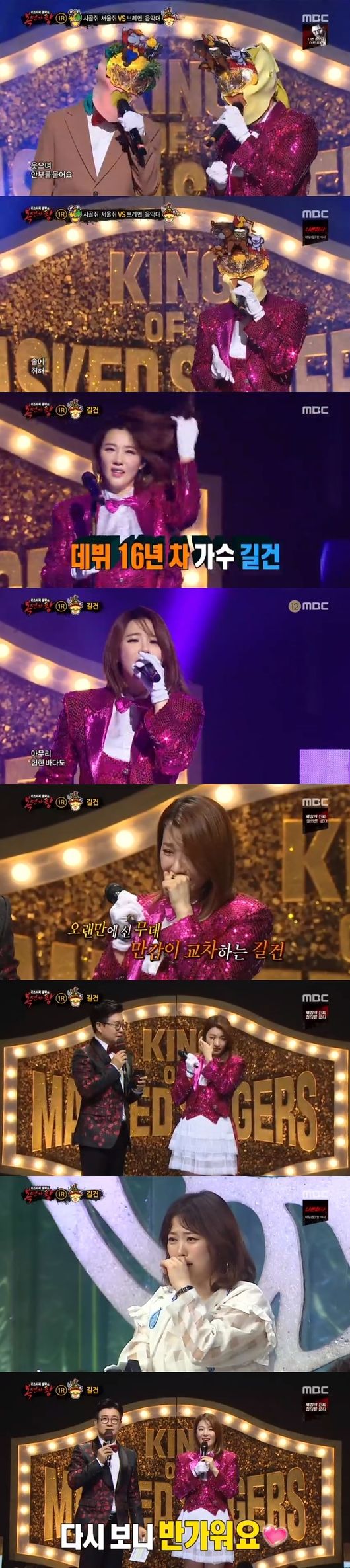 '복면가왕' 브레멘 음악대 길건이 가면을 벗고 눈물을 보였다.