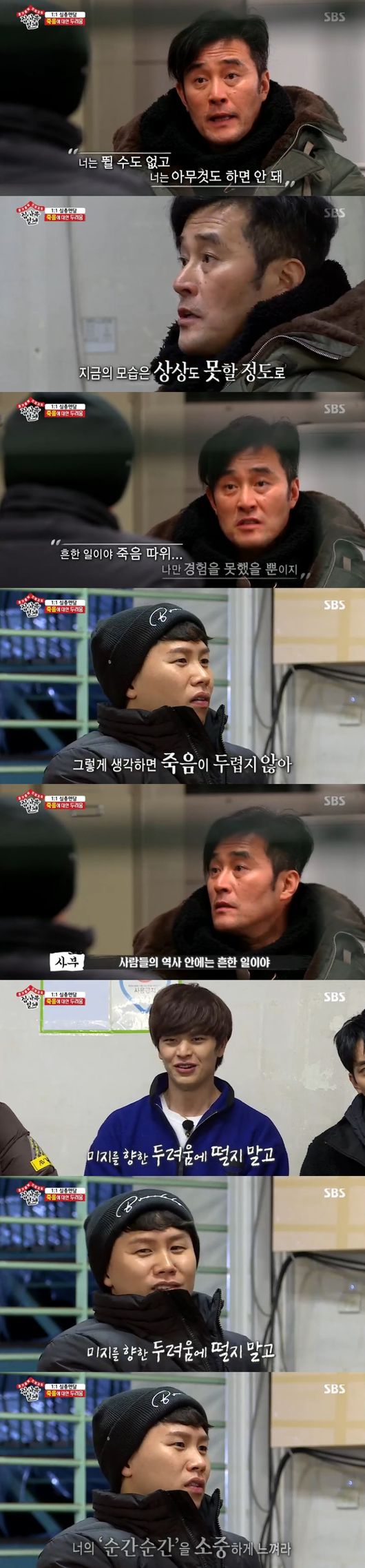이승기는 "사람은 보고싶은대로 보고 믿고싶은 대로 믿는다는 것을 배웠다"고 하자, 최민수는 "여기에서 그런걸 배웠냐"고 질문, 이승기는 "가르침 안 주고 내가 찾았다"면서 최초 자기주도학습이라 말해 웃음을 안겼다. 최민수는 "두려움에 실체가 없다 내 마음이 두려움을 만드는 것"이라면서 인내는 어떠한 괴로움에도 듣는 명약이라 전했다.