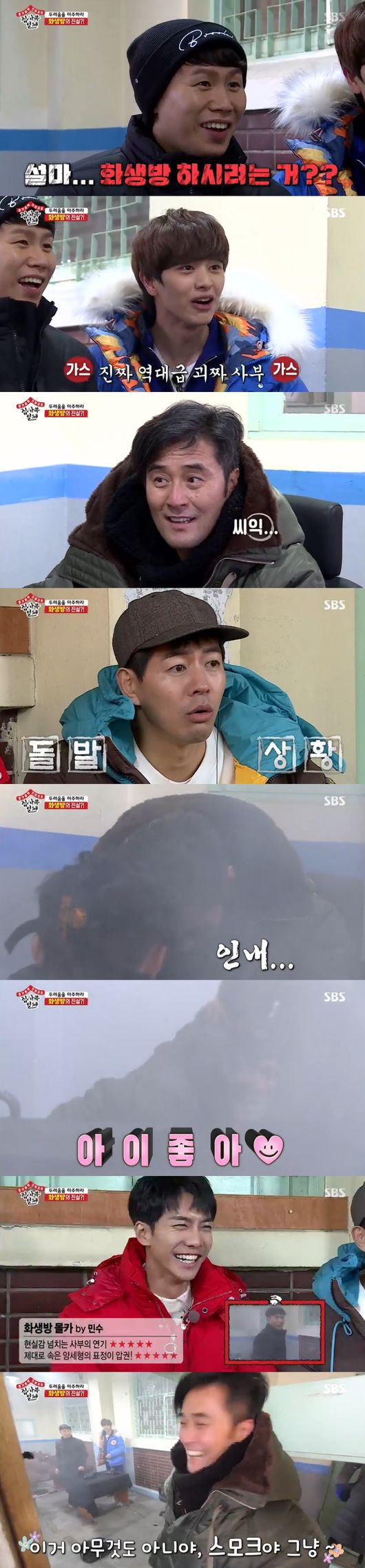 이날 최민수는 방독면을 꺼내 화생방 체험을 전했다. 양세형과 육성재는 엉겁결에 가스가 차오르는 화생방에서 버텨야했다. 최민수는 "내가 쓰라고 하면 써라"고 말했고, 연기가 더욱 뿌옇게 짙어지자, 이제야 방독면을 쓰라고 했다. 양세형은 당황한 성재부터 방독면을 쓰여주며 자상한 모습을 보였다. 두 사람과 달리 방독면을 쓰지 않은 최민수는 갑자기 기침을 호소하더니 쓰려졌다. 갑작스러운 상황에 쓰러진 최민수, 밖에있던 이승기는 몰래카메라라 생각했다. 이때 양세형은 자신이 쓰던 방독면을 바로 벗어 최민수에게 씌여줬다.