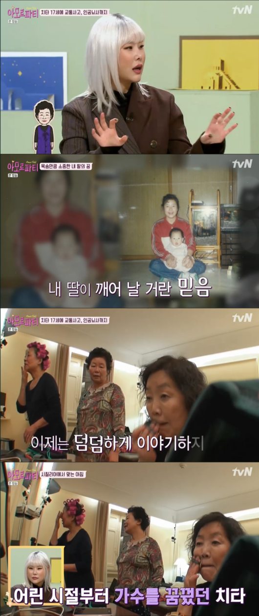 지난 20일 오후 방송된 tvN ‘아모르파티’에서 치타의 어머니가 새롭게 합류해서 싱혼(싱글 황혼)들과 함께 이탈리아 시칠리아로 떠났다.