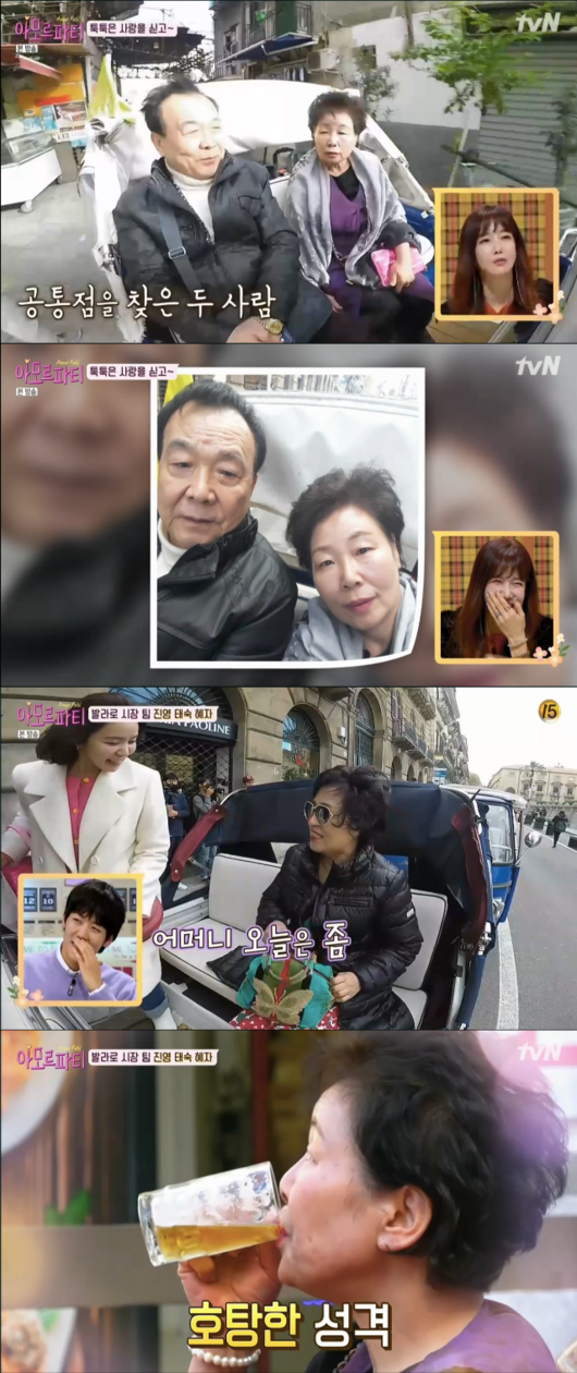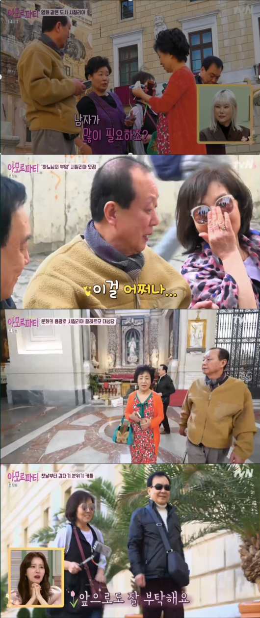 지난 20일 오후 방송된 tvN ‘아모르파티’에서 유세윤의 어머니, 치타의 어머니, 카이의 어머니, 최현호의 아버지, 김혜진의 아버지가 출연해서 이탈리아 시칠리아로 떠났다.