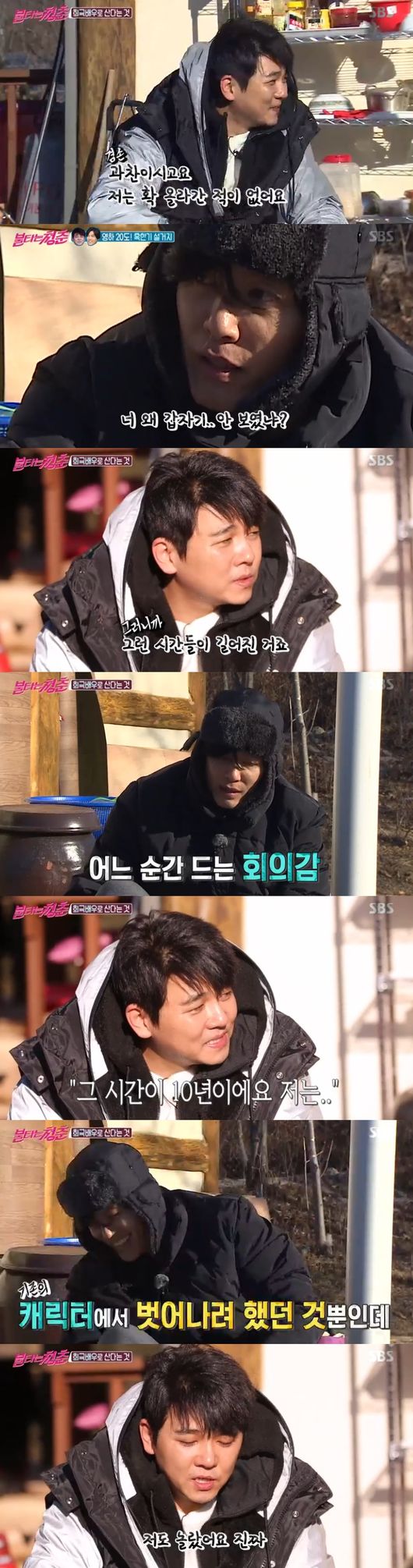 22일 방송된 SBS 예능 '불타는 청춘'에서 새친구로 최민용이 출연했다. 영하 20도에 혹한기 밥상차림이 그려졌다. 모두 광규가 김장 때 손을 베었던 때를 언급, 민용은 "피보면 어지럽다"고 했다. 최성국이 "선지해장국 못 먹겠다"고 하자, 민용은 "먹는다. 그건 피가 응고된 것, 피가흐르는 걸 못 본다"면서 "살생을 못한다 근데 수렵면허는 있다. 사냥은 할 수 있다"고 말해 반전모습을 보였다.
