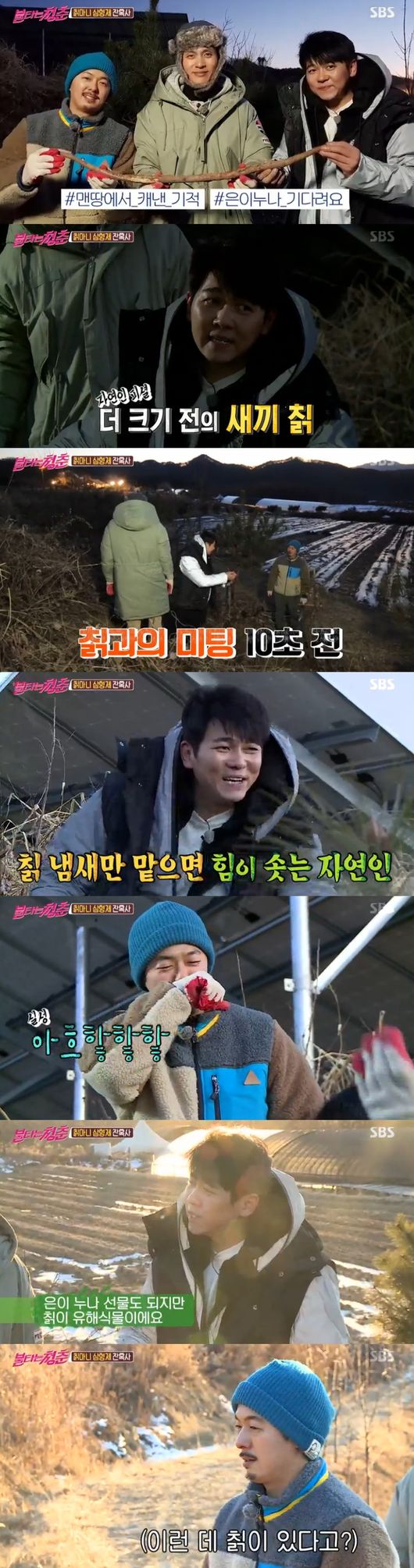 장장 세시간만에 칡캐기에 성공해 다시 숙소로 이동, 따뜻한 방안에서 김도균은 즉석 연주회를 열었다. 최성국이 "은이하면 떠오르는 것"이라 신청곡을 전하자, 김도균은 '함께 할거야'라는 자작곡 노래를 불렀다. 지친 마음을 힐링해주는 위로의 노래였다. 따뜻함과 아련함이 공존한 밤이었다.