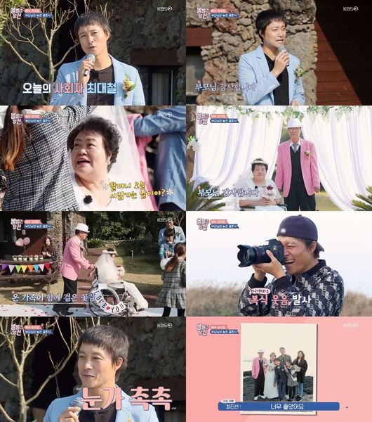 이날 최대철은 결혼식 및 폐백 준비부터 사회, 주례, 축가까지 담당하며 일당백 효도를 했다. 구슬땀을 흘리면서도 웃음을 잃지 않는 아들 최대철의 모습에 부모님 얼굴도 행복으로 가득했다.