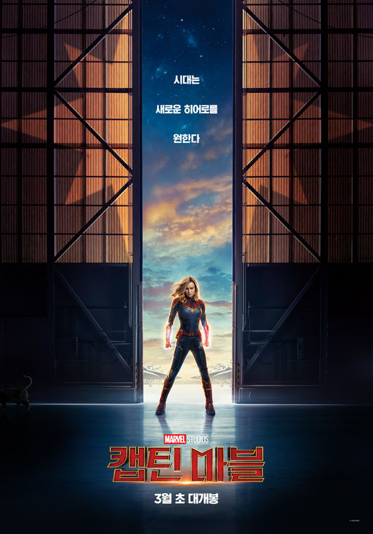 '어벤져스: 엔드게임'과 함께 올해 전 세계 최고의 기대작으로 손꼽히고 있는 '캡틴 마블'을 3월 7일(목) 대한민국 극장에서 만날 수 있게 됐다. '캡틴 마블'은 2018년 국내 1,100만 이상 관객을 동원한 '어벤져스: 인피니티 워'를 통해 위기에 빠진 어벤져스의 마지막 희망으로서 '어벤져스: 엔드게임' 출연이 예고된 새로운 히어로 캡틴 마블(브리 라슨)의 탄생을 그린다.