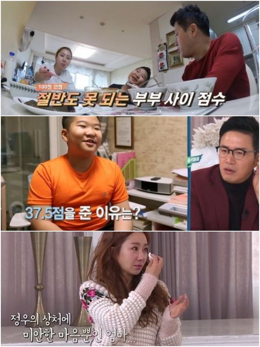 정우 군은 부부 사이 점수를 묻는 조영구의 질문에 "37.5점이다"라는 답을 들려줬다. 화면을 지켜보던 장영란은 너무나도 낮은 점수에 화들짝 놀랐고, 조영구는 "예전에 다투는 모습을 아이에게 많이 보여줬다. 아이에게는 그 기억이 남아있는 것 같다"라며 멋쩍어했다.