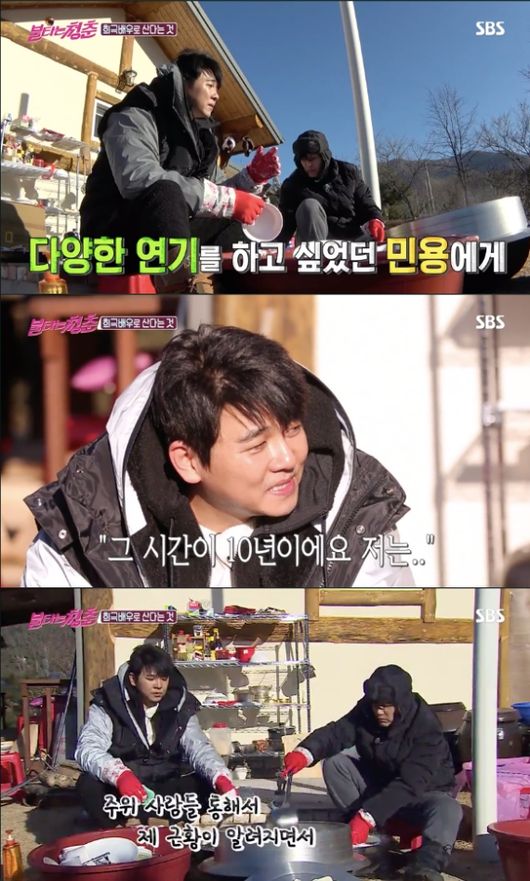 '거침없이 하이킥' 방송 10주년을 맞아 조금씩 방송에 모습을 드러냈던 최민용은 인기를 뒤로 하고 다시 모습을 감췄다가 최근 '불타는 청춘'에 새로운 막내로 합류했다. 연기 활동은 여전히 쉬고 있는 상태. 알고보니 최민용은 연기적인 제약과 외로움으로 힘겨운 시간을 보냈다고 한다.
