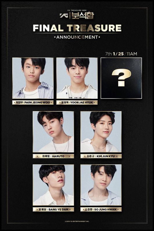 지난 21일 박정우, 그리고 오늘 윤재혁이 추가 멤버로 공개된데 이어 ‘YG보석함’ 마지막 데뷔 멤버는 오는 25일 오전 11시 ‘YG보석함' VLIVE 채널을 통해 공개된다. /misskim321@osen.co.kr