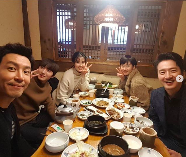 사진 속에는 JTBC 금토드라마 ‘SKY 캐슬’ 배우 이태란, 최원영, 염정아, 정준호, 찬희가 함께 식사를 하고 있는 모습이다.