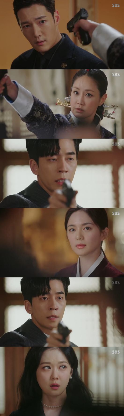 마침 이혁이 태후강씨 옆에 있는 민유라와 마주쳤다. 이혁은 "어떻게 저런 여자를 궁에 다시 들인거냐"며 노발대발, 태후강씨는 "이젠 내 궁인, 함부로 대하지 마라"고 말했다. 이혁은 "당장 내 궁에서 나가라"며 유라에게 총을 겨눴다. 그러자 태후강씨가 천우빈에게 총을 겨누며 "민유라를 쫓아낼 거면 천우빈도 쫓아내라"면서