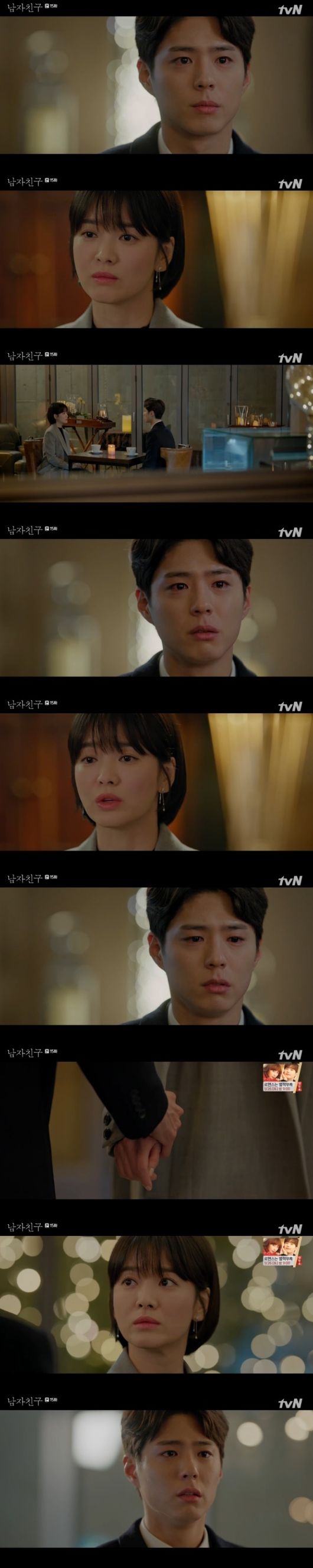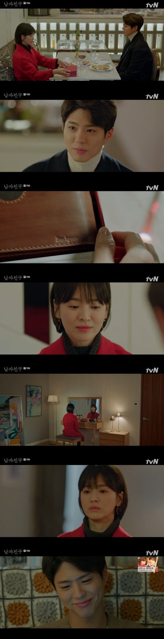 23일 오후 방송된 tvN '남자친구'에서는 차수현(송혜교 분)이 김진혁(박보검 분)에게 이별을 통보하는 모습이 그려졌다. 이후 김진혁은 차수현의 마음을 받아들이고 사직서를 작성했다.
