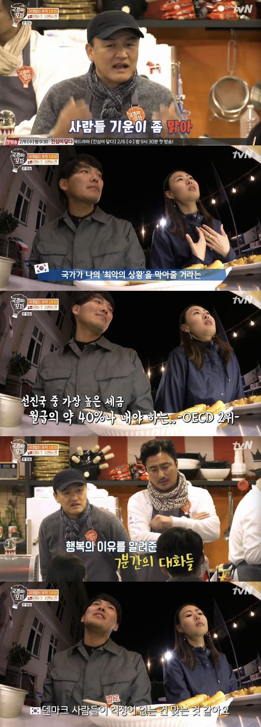 또한 덴마크에 정착해 호떡 가게를 하는 젊은 사장이 방문했고 이야기를 나누던 도중 박중훈은 "덴마크 사람들의 기운이 맑다. 표정이 다 밝은 것 같다"고 말했고 안정환 역시 "덴마크 사람들과 얘기하다보면 행복해 보인다"고 감탄했다.