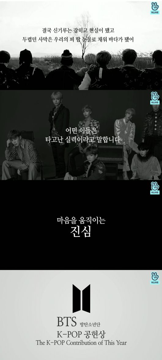 방탄소년단은 2분기, 3분기 오프라인 앨범부문 올해의 가수상과 K-POP 공헌상을 수상하고 영상을 통해 소감을 전했다.