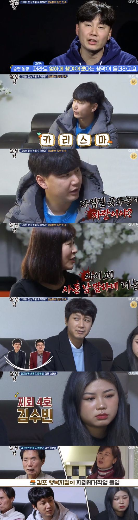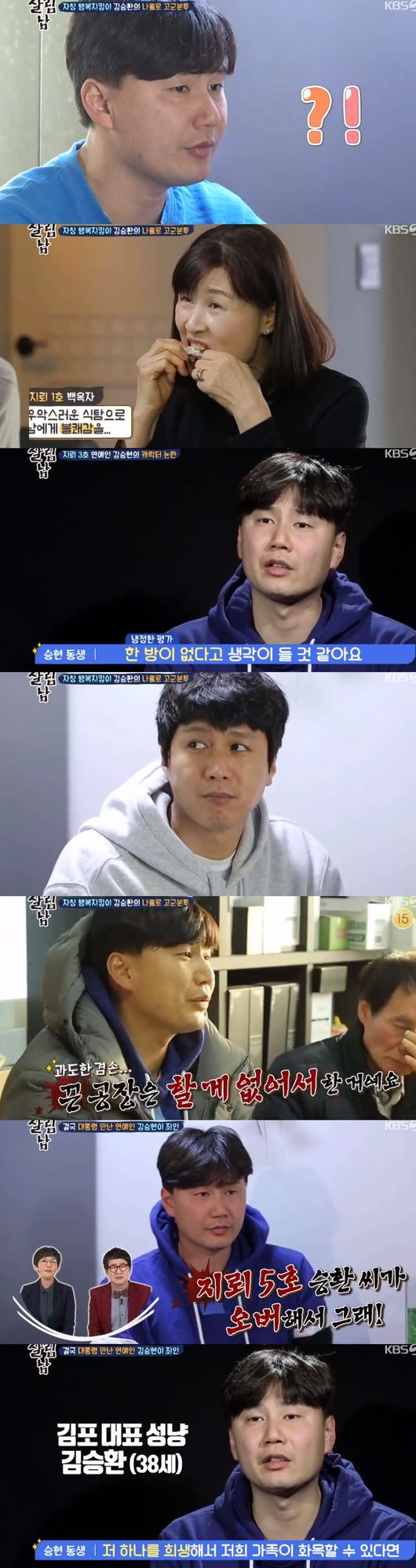 김승환은 "가족이 화목할 수 있다면 제 한 몸 희생해도 된다"고 말했다. 하지만 어머니는 "우리는 지금이나 예전이나 잘 살고 있는데 진상 피우고 오버한다. 본인이나 똑바로 살지 왜 새삼스럽게"라고 말해 폭소를 자아냈다.