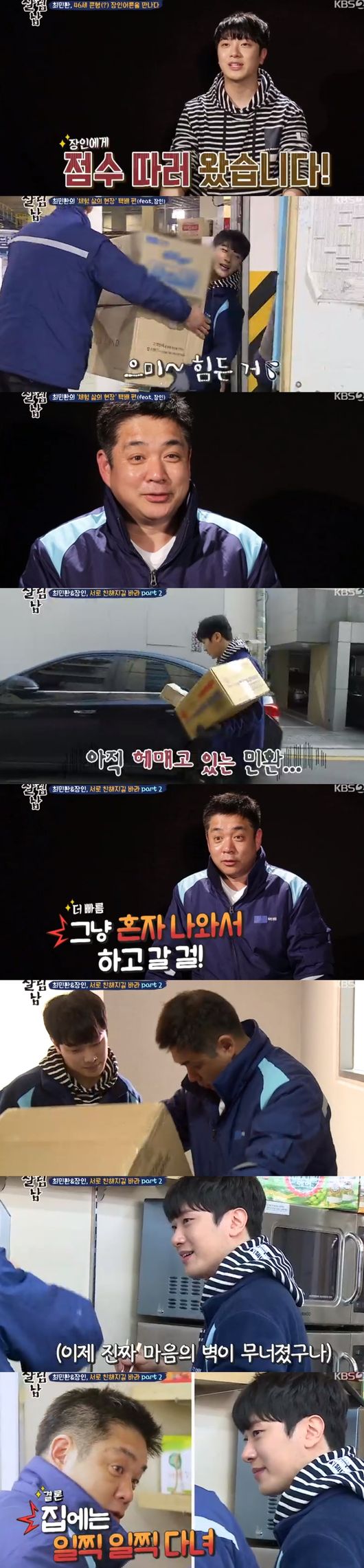 최민환과 장인이 배달에 나섰다. 최민환은 첫 택배 일이라 서툴지만 열심히 움직였다.