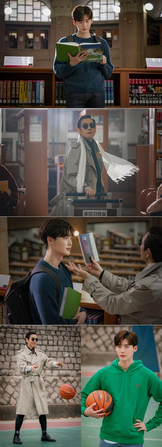 공개된 사진은 ‘겨루’의 최연소 편집장 차은호와 대표 김재민의 범상치 않은 첫 만남을 담고 있다. 대학생 시절에도 남다른 청순미(美)를 뽐내며 도서관에 후광을 내리는 차은호의 비주얼이 시선을 강탈한다. 오직 책에만 시선을 둔 문학소년 차은호 앞에 등장한 김재민은 주윤발을 연상시키는 바바리코트와 흰 머플러로 비범한 아우라를 발산한다. 차은호의 무관심에도 그의 눈물겨운 구애는 멈추지 않는다. 도서관에 이어 농구장에도 나타나 관심을 끌기 위해 애쓰는 김재민의 천연덕스러운 표정과 차은호의 아연실색이 대비를 이루며 웃음을 자아낸다.