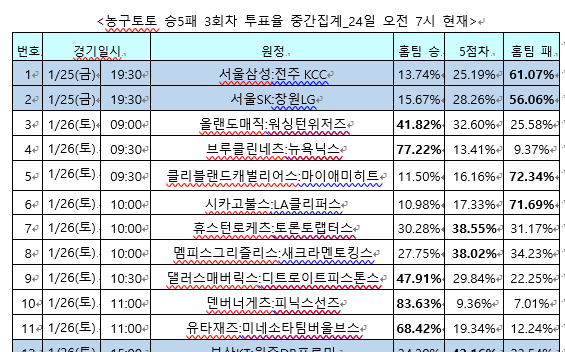한편, NBA와 KBL을 대상으로 하는 이번 농구토토 승5패 3회차 게임은 25일(금) 오후 7시20분까지 참여할 수 있으며, 경기가 모두 종료된 후에 결과가 공식 발표된다.