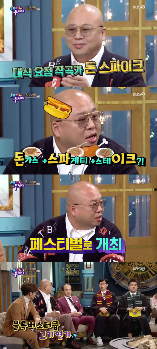 지난 24일 오후 방송된 KBS 2TV '해피투게더4'에서는 돈스파이크가 게스트로 출연해 고기 페스티벌부터 저작권료 수입, 여자친구 등에 대해 모두 밝혔다.
