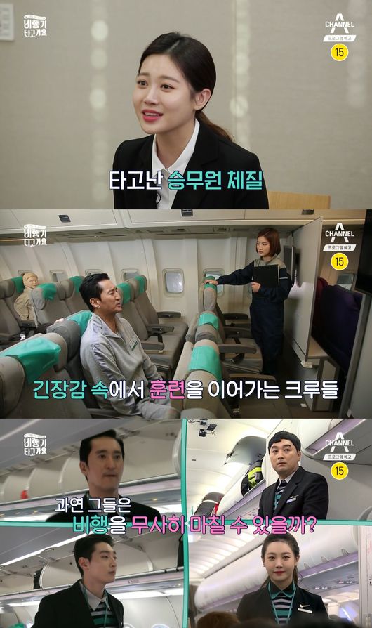‘비행기 타고 가요’는 기내 승무원을 꿈꿔왔던 4명의 연예인들이 승무원의 업무와 일상을 리얼하게 체험하는 승무원 도전 버라이어티 프로그램이다. /kangsj@osen.co.kr
