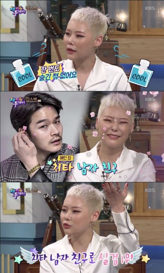 치타는 지난 24일 방송된 KBS 2TV ‘해피투게더4'에 출연해 공개 연애 중인 남자친구 남연우 언급에 "전 한 번도 연애를 숨겼던 적이 없다"며 당당하고 솔직한 매력을 발산했다.