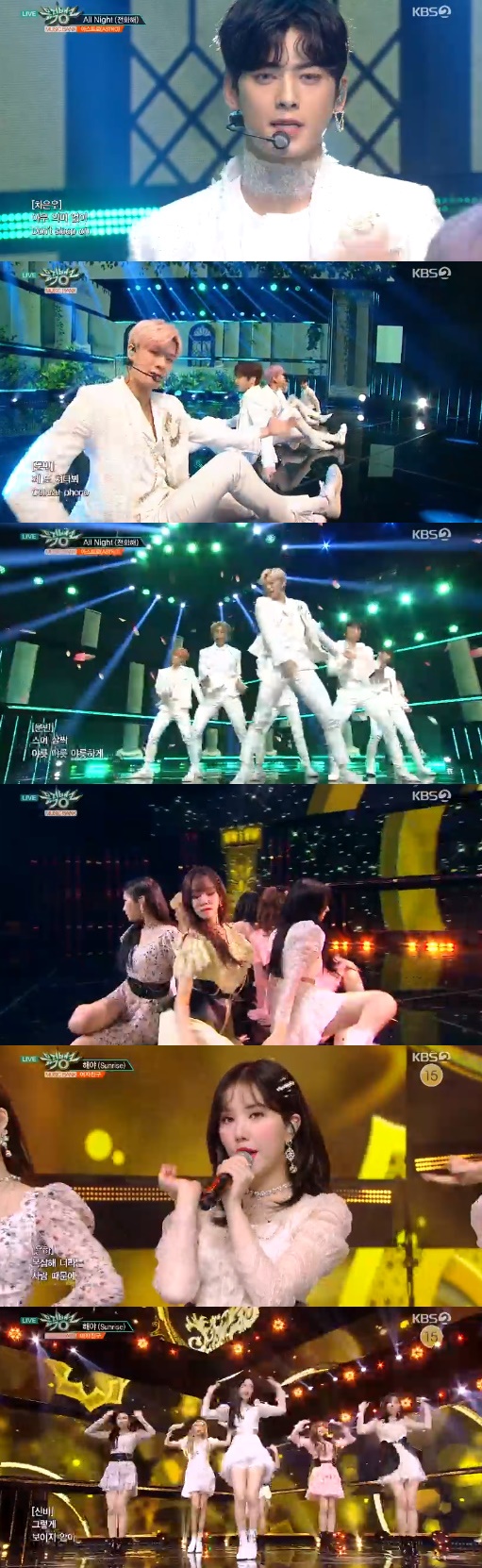함께 1위 후보에 오른 아스트로 또한 업그레이드된 무대를 펼쳤다. '올 나잇'은 깊은 밤 사랑하는 연인의 연락을 기다리며 밤새 통화하고 싶은 한 남자의 마음을 솔직하게 표현한 곡으로, 아스트로는 독보적 비주얼과 퍼포먼스로 몽환적 섹시미를 발휘해 여심을 사로잡았다.