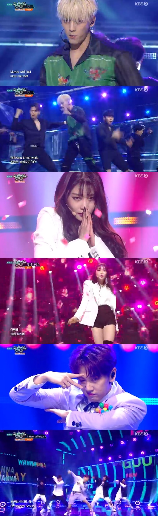 이민혁, 노태현의 솔로 무대도 있다. 이민혁은 '야(YA)'로 파격적인 비주얼이 돋보이는 무대를 완성했고, 노태현은 'I Wanna Know'로 특유의 센스 넘치는 퍼포먼스를 펼쳤다. 또 신인 걸그룹 체리블렛이 깜찍한 매력이 돋보이는 'Q&A'로 데뷔 무대를 가져 의미를 더했다.