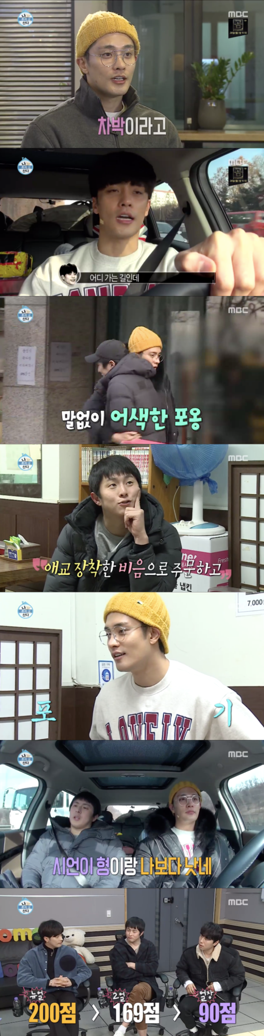 순순히 성훈의 차를 탄 기안84는 그와의 첫 만남에 대해서 이야기하는 등 편안한 모습이었다. 성훈과 기안84는 보령으로 가는 동안 추억에 잠겨 옛이야기를 나눴다. 기안84는 “키도 크고 몸도 좋고 잘생겼는데 형 처음에 무서웠다. 엄친아?”라면서, “그런데 형 공부는 안 한 것 같다. 나는 이상하게 공부를 못하는 사람을 보면 찬군검아 들더라”라고 말해 성훈을 당황하게 만들었다.