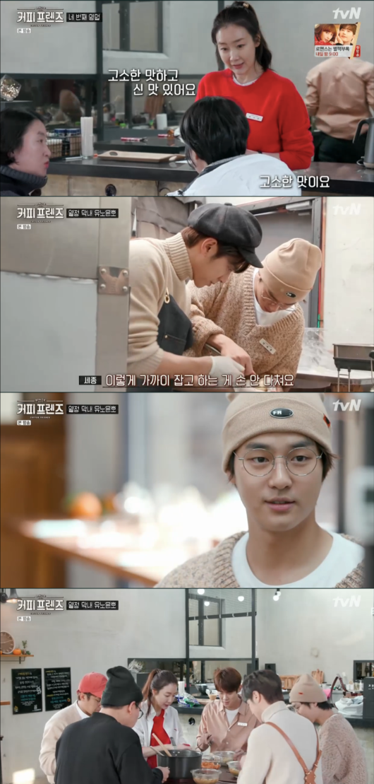 지난 25일 방송된 tvN '커피프렌즈'에서 유연석, 손호준, 최지우, 양세종, 조재윤은 '커피프렌즈' 세 번째 영업을 이어갔다. 다섯 사람은 계속 찾아오는 손님들을 맞으며 바쁘게 일했다.