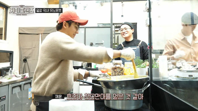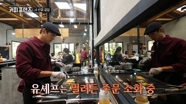 지난 25일 방송된 tvN '커피 프렌즈'에서는 세 번째 영업을 성공적으로 마친 멤버들과 아르바이트생으로 합류한 유노윤호가 눈길을 사로잡았다.